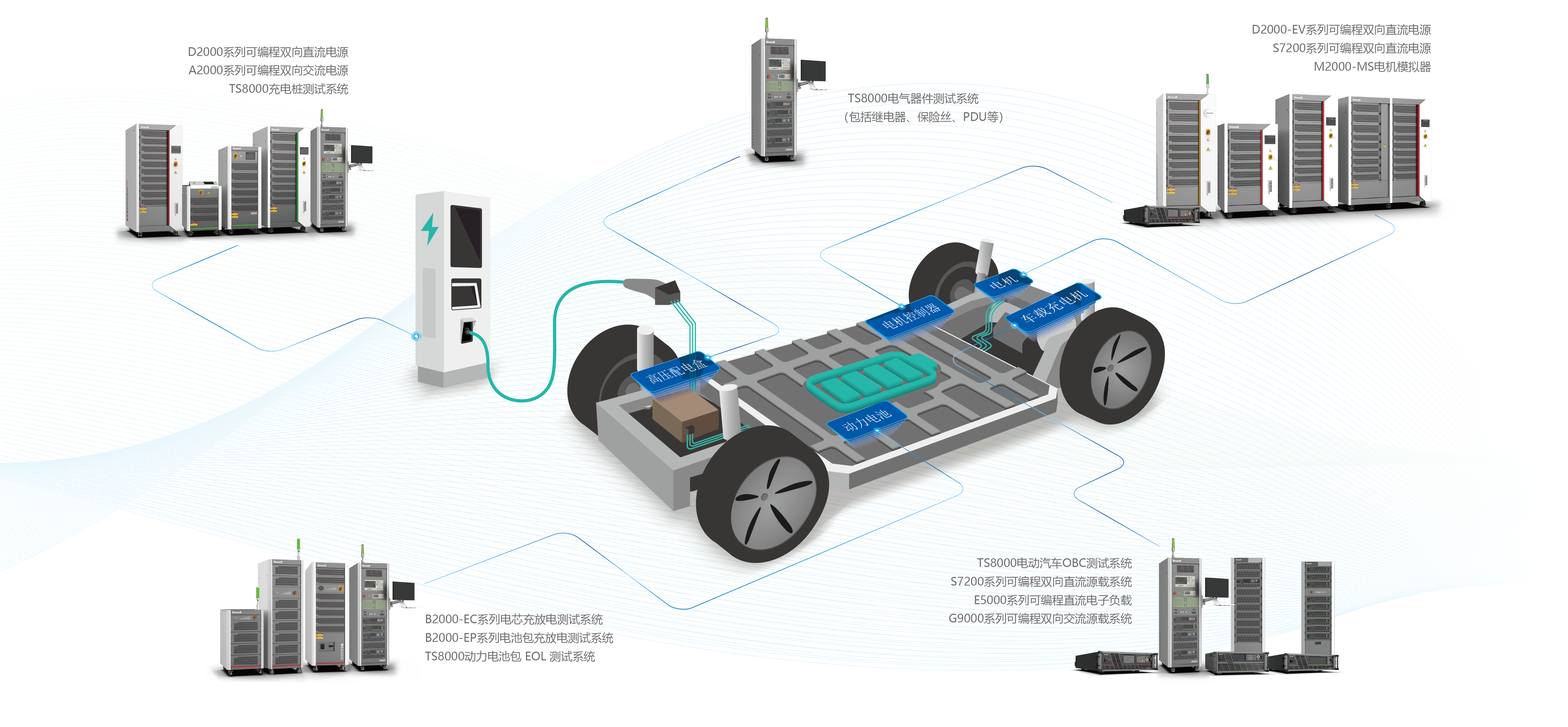 为新能源汽车行业提供专业、高效的测试服务,金年会推出整套测试解决方案,包含电机电控测试、动力电池测试、交/直流充电桩测试及汽车电子测试等。